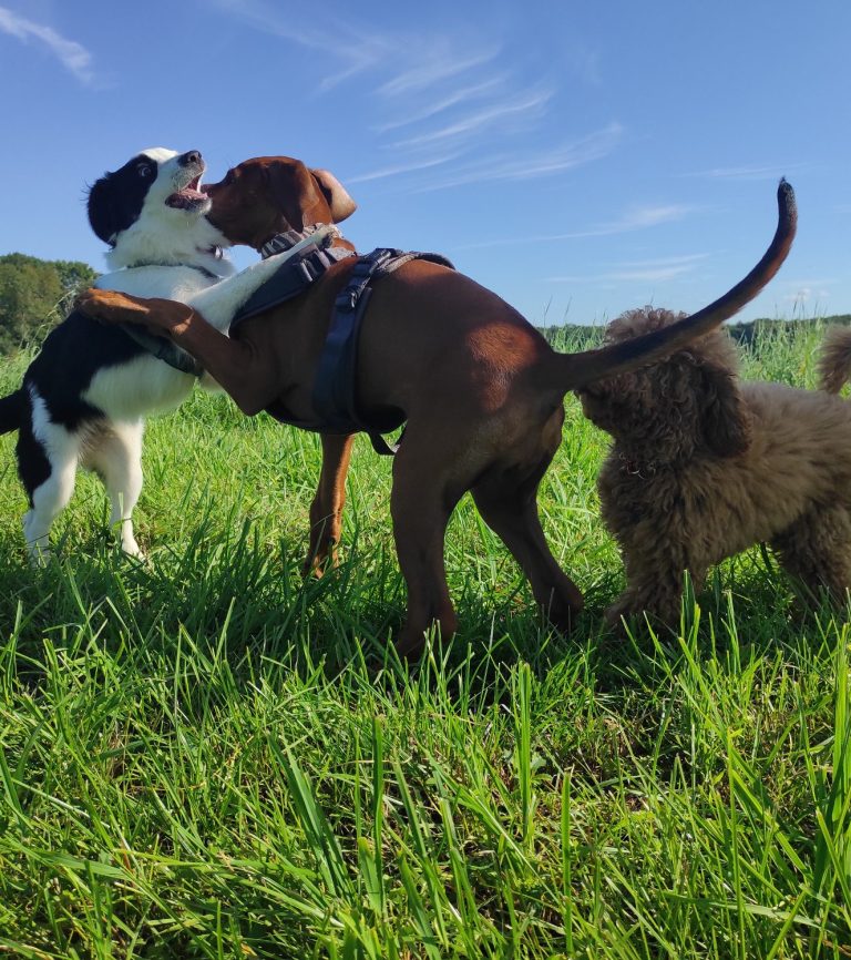 Diese Gruppe ermöglicht dir und deinem Hund Freilauf und Interaktionen in einer Hundegruppe unter fachkundiger Anleitung. Im Vordergrund stehen hier der Sozialkontakt deines Hundes mit Artgenossen und das Ziel, dass du deinen Hund im freien Kontakt besser verstehen und einschätzen lernst. Das Training dient auch dazu die Kommunikation deines Hundes in der Interaktion mit Artgenossen zu unterstützen und ggf. Ängste, Unsicherheiten oder respektloses Sozialverhalten abzubauen und positives Verhalten richtig zu unterstützen. Die Einschätzung von Fremdhunden und auch das Management des eigenes Hundes in schwierigeren Situationen sind ebenfalls ein wichtiger Bestandteil dieser Gruppe.