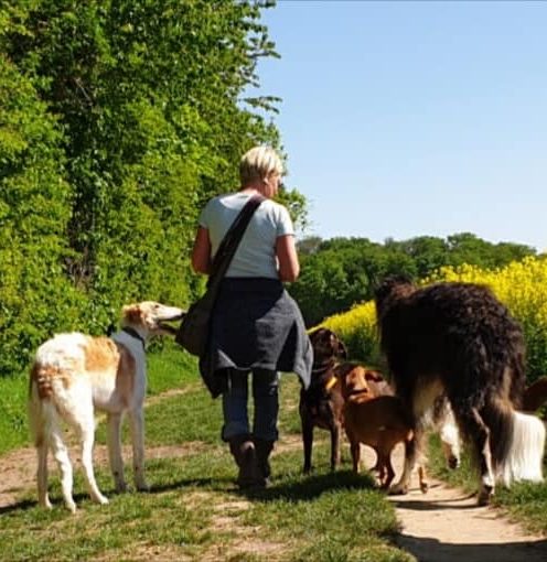 Ebenso begleite ich viele Hunde aus dem Tierschutz. Gerade Hunde mit schwieriger Vorgeschichte brauchen Zeit, Geduld und ein Training, das Vertrauen aufbaut. Die Resozialisierung und das behutsame Heranführen an ein entspanntes Leben im Alltag sind mir dabei besonders wichtig.